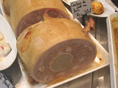 | 子豚ちゃんの丸焼き、じゃなかった詰め物が、ひときわ目を引きます。 この時期、こんな豪華なお惣菜が並びます。 |