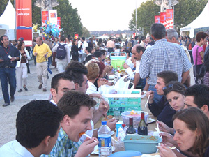 今日はボルドーでは恒例となったワイン祭りの様子をお知らせします。 何時の頃からかヴィネスポのない年に行われるようになり、年々盛大になりつつあります。今年はカンコンス広場と呼ばれているヨーロッパ最大の広場として知られている場所にたくさんのスタンドがたちました。私の住んでいるところからすぐ近くです。 |