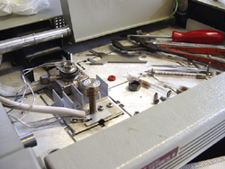 未来のブッションだったりしたら凄い? 実はこれ、ワイン中の香りを測定する装置の心臓部とも言える大切な部分なのです。一年のうち何回かはこれを分解して掃除するのです。これを怠ると正確に香りが測れなくなってしまいます。一人静かに黙々と小さなピンセットを使って掃除をします。 一応私もワイン関係の仕事の筈ですが、ソムリエ諸氏やインポーターの方々の華やかな世界とは似ても似つかず、という場面に出くわすこと多々あり!です。 |