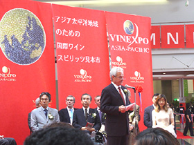ドゥルテ社のプレジデント、そして今回のヴィネスポ・アジア・パシフィックの最高責任者であるジャン・マリー・シャドルニエ氏によるヴィネスポの開会宣言です。 |